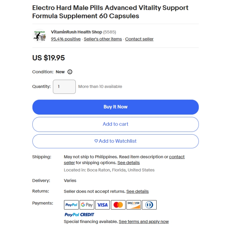 Electro Hard is also unavailable for sale on eBay or any affiliated eBay stores. The decision to avoid selling on third-party platforms is made to maintain complete control over product quality. This prevents the risk of contaminated or tampered goods reaching consumers. For safety, it is recommended always to purchase Electro Hard directly from the official website.
